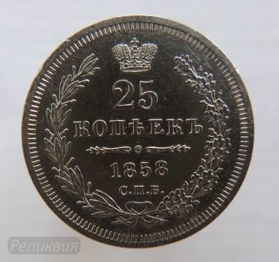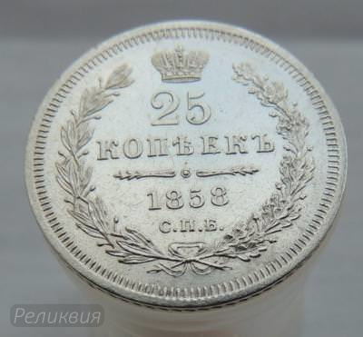 Описание лота: 25 копеек 1858г. ФБ